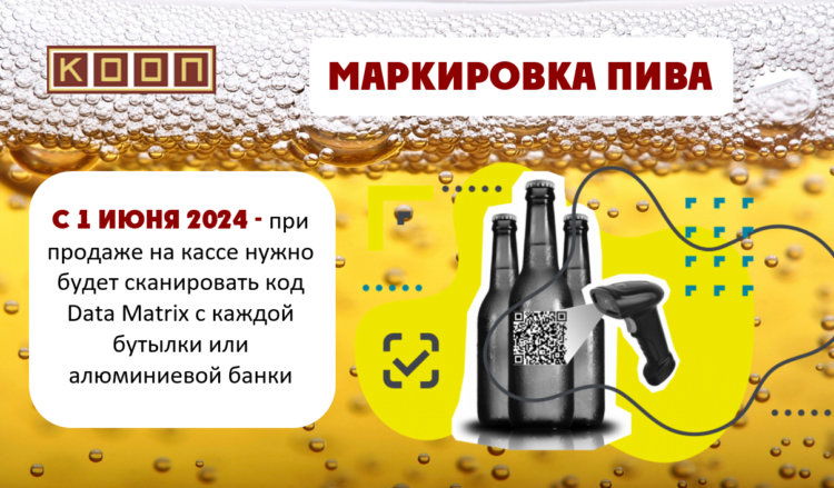 Напоминаем, что с 1 июня 2024 года вступают в силу новые правила для тех, кто занимается продажей пива в потребительской упаковке. При продаже на кассе нужно будет сканировать код Data Matrix с каждой бутылки или алюминиевой банки.