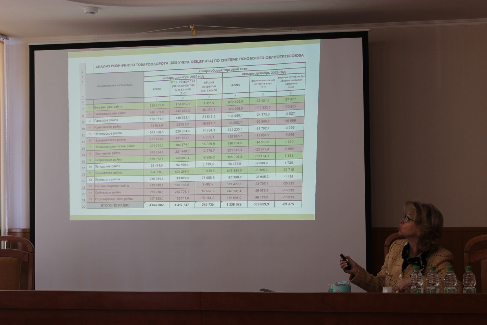 К совещанию была подготовлена презентация с глубоким анализом ситуации по отдельным розничным предприятиям, по группам товаров, ассортименту, по причинам потери оборота и другим важным показателям. Были рассмотрены как положительные, так и отрицательные примеры. Презентация направлена руководителям райпо для более детального изучения и прогнозирования результатов в работе.