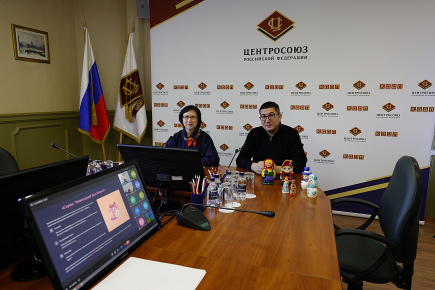 Максим Разыков, старший менеджер НХП АО СФТ Центросоюза, рассказал о востребованности изделий народных художественных промыслов в новогодний сезон. Он подчеркнул ценность таких изделий как элемента связи поколений и культурного наследия, отметив, что они вне времени продолжают сохранять свою стоимость и привлекательность. Спикер продемонстрировал готовые решения подарков, включая новогодние наборы с тематическими игрушками и изделиями локальных промыслов в сочетании с чаем, мёдом и вареньем
