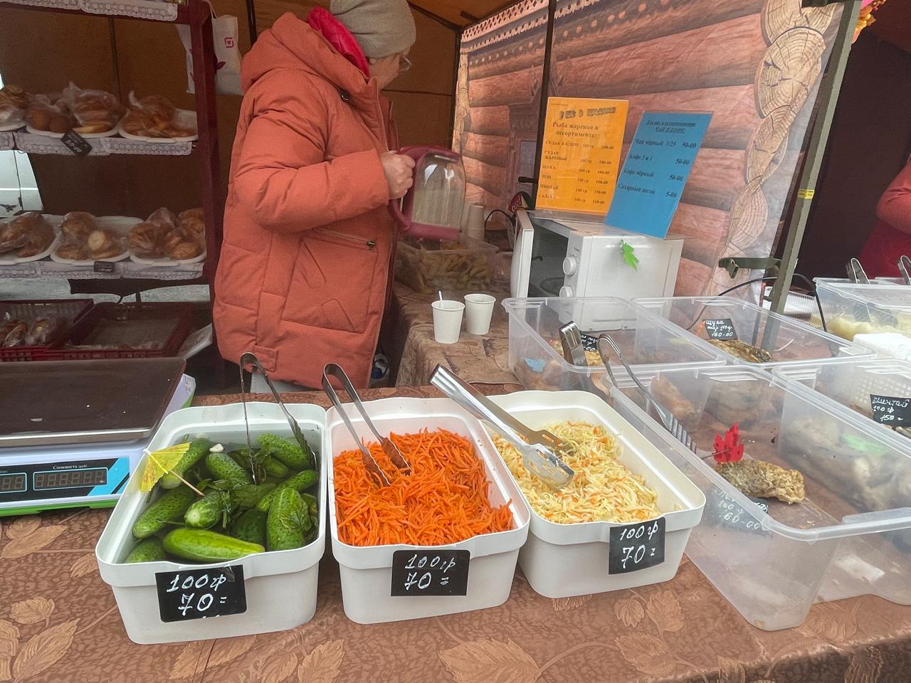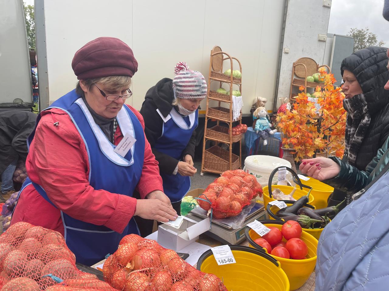 Ярмарка – это еще и удобный случай запастись отборными овощами на зиму. Порховское райпо продавало три вида картофеля, свеклу, морковь, капусту, лук, а еще и огурцы соленые по своим рецептам. Псковское райпо тоже на ярмарках всегда торгует сезонными овощами хорошего качества от местных сельхозпроизводителей. Более 50% выручки на ярмарке у этих двух райпо –овощная продукция. А чуть менее 50 % проданных потребкооперацией на ярмарке товаров – это собственная продукция – хлебобулочная, кулинарная и кондитерская.