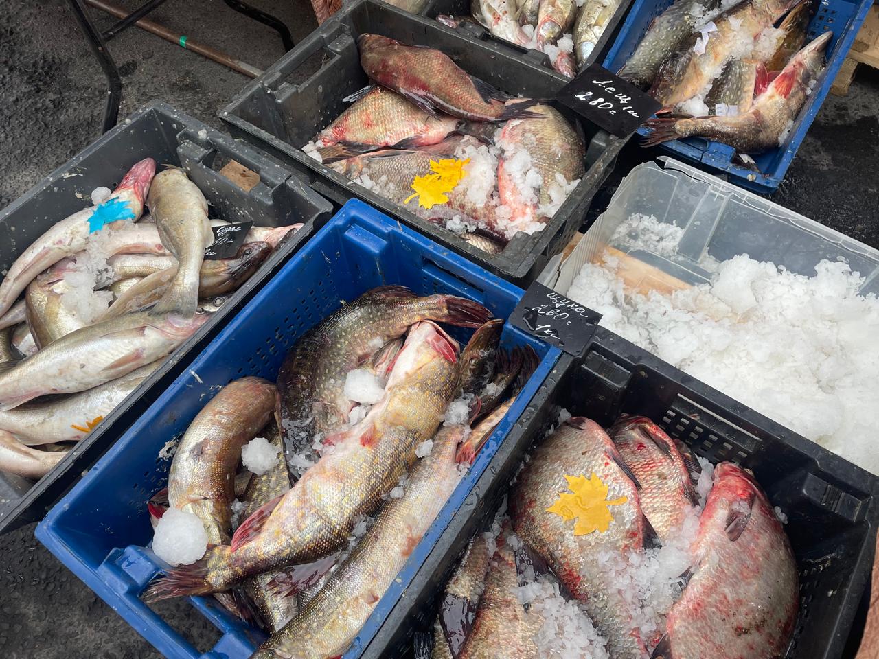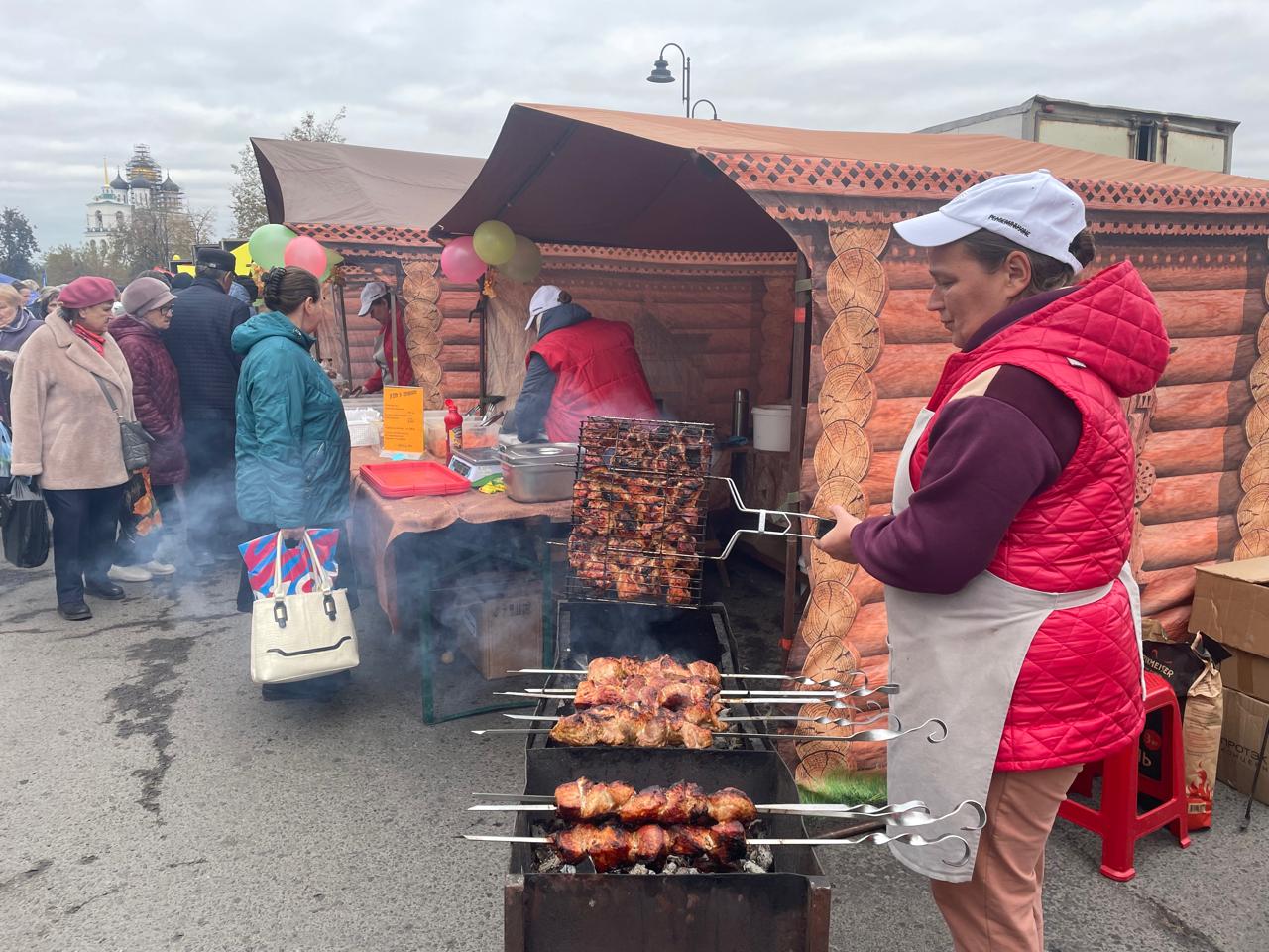 Гдовские кооператоры не оставили гостей ярмарки без вкусного обеда. Ароматные шашлыки с пылу с жару, а к ним – овощные салатики и свежепросольные огурчики, а для любителей рыбных блюд – рыба жареная шести видов.