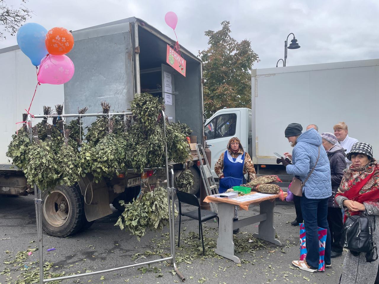 У машин Псковского райпо толпятся любители бани. За их дубовые и березовый веники покупатели голосуют рублем. А еще есть любители, которые ищут в райпо хлеб именно Палкинского хлебозавода. Кроме хлеба здесь и разнообразная выпечка, пироги и сладости.